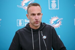 Jeff Hafley brindó declaraciones previo al inicio del campamento voluntario de los Miami Dolphins en el inicio del programa de actividades de la temporada muerta.