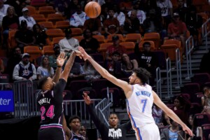 El Miami Heat derrotó 122-120 a los Campeones el Oklahoma City Thunder en un partido que se definió en los últimos tres segundos. Shai Gilgeous-Alexander anotó 39 puntos.